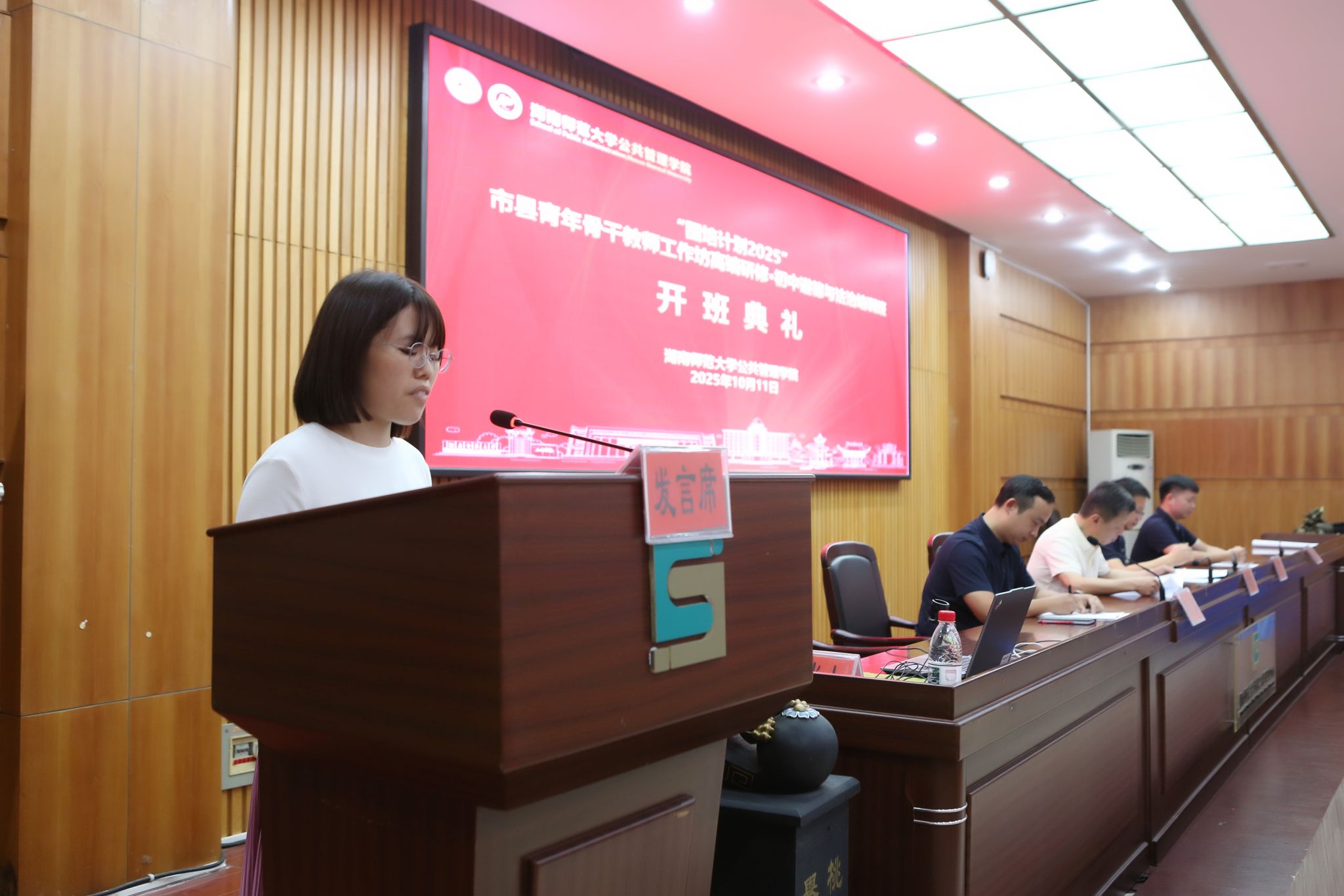 2025年10月11日上午8点,“国培计划2025”市县青年骨干教师工作坊高端研修·初中道德与法治培训班开班典礼在我院三楼报告厅隆重举行。长沙市雅礼中学思政教师、雅礼丁江学校校长马明、我院副院长胡雪松、培训中心主任邹水平出席了典礼,典礼由我院行政办副主任刘操主持。
