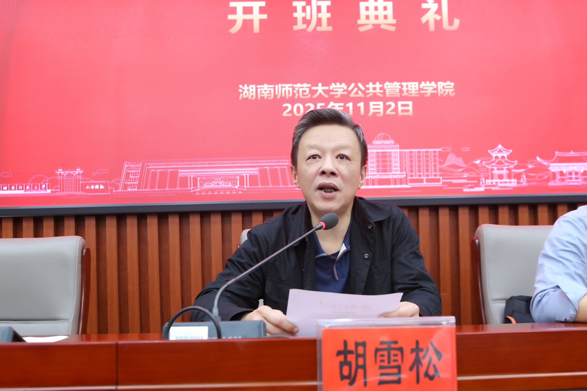 2025年11月2日上午8时,“国培计划2025”-河南省农村骨干教师能力提升项目省级骨干教师(初中道德与法治)培训班开班典礼在我院博后楼三楼报告厅隆重举行。湖南省初中道德与法治名师培养对象、雅礼中学思政教师、雅礼丁江学校校长马明,我院副院长胡雪松、培训中心主任邹水平参加了典礼,典礼由培训中心副主任刘操主持。