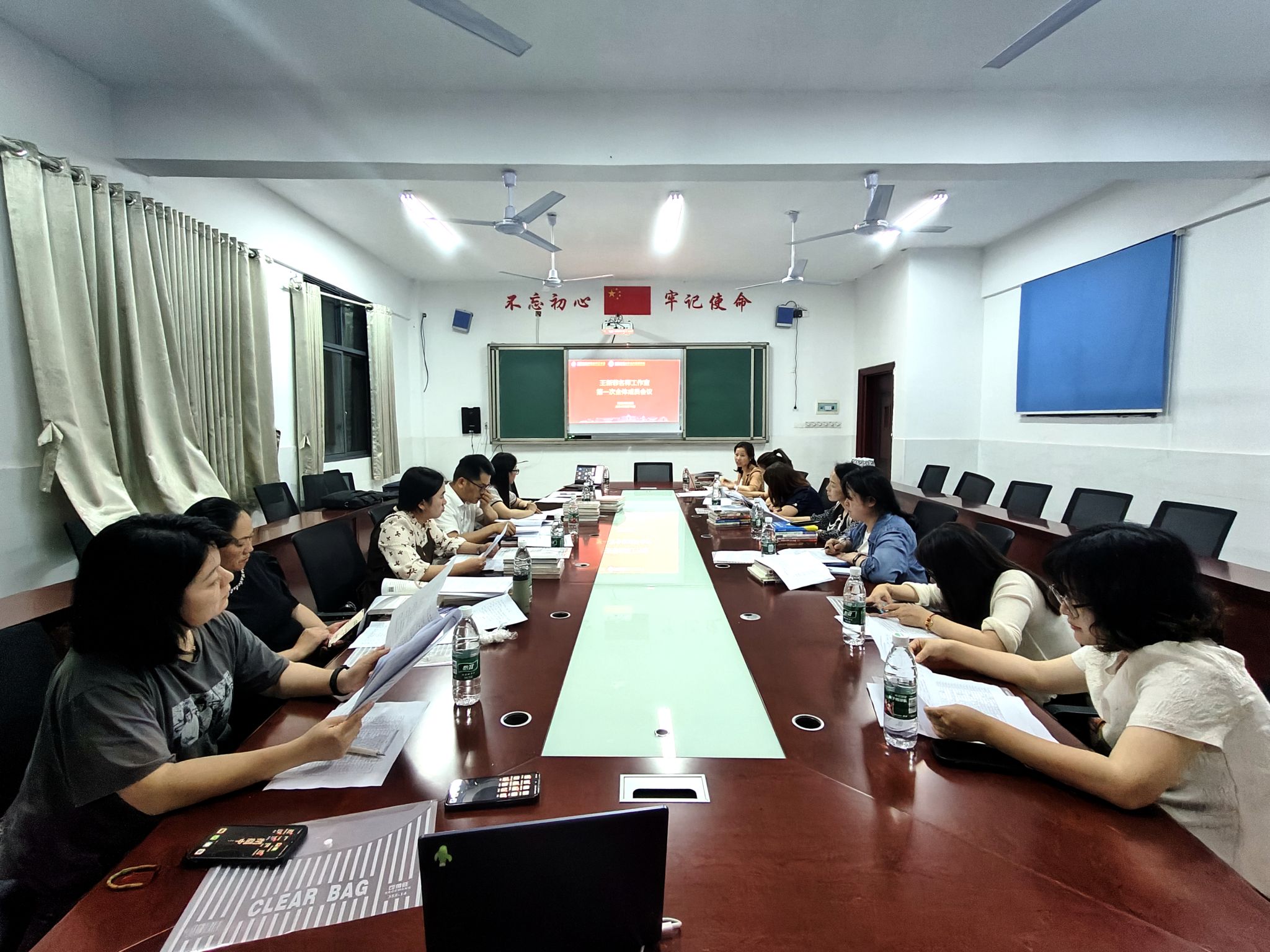5月16日晚,王新菲名师工作室在花垣县召开工作室合并后第一次全体成员会议。王新菲解读了工作室制度,布置了研修任务。邹水平代表英国正版365首页道德与法治(思想政治)名师培养基地提出了三点要求,一是要坚决贯彻省教育厅的决策部署,迅速完成角色过渡和转化;二是要严格按照工作室的规章制度和要求,保质保量完成三年研修任务;三是要严肃认真对待工作室每次研修活动,圆满完成培训周期内的既定目标。此次会议是王新菲名师工作室成员调整后的第一次全体成员会议,会议的举行为工作室下一步的工作开展奠定了基础。